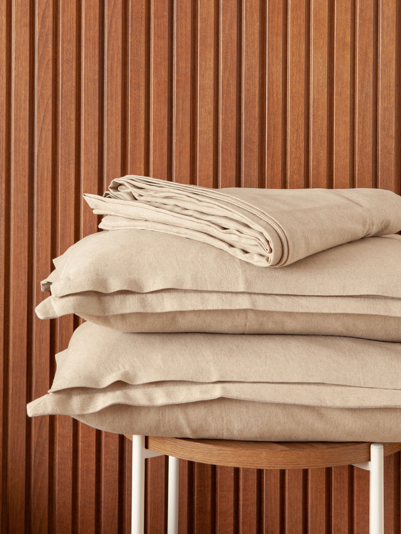 Sustainable linen weaves luxurious bedding that’s elegant yet laid-back. Naturally regulating temperatures, our exclusive sheets keep sleepers cool in warm weather and warm in cooler months. Dreamy and serene, the pampas sheet harmonizes effortlessly with neutral and colorful bedding for a bed made just for you.