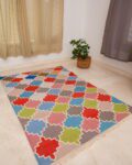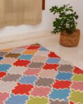 Kilim a flat-woven carpet or rug made in India.Traditionally, the kilim is woven using the slit-weave technique, in which a number of wefts are woven around the last warp of a single color, leaving small vertical gaps or slits between two or more wefts of different colors.