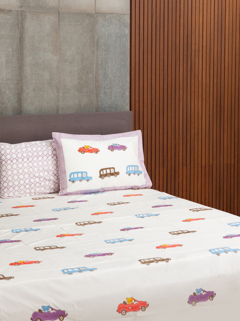 Our bedsheet and pillow covers are hand block printed with playful animals and themes in the monsoon rain.These bedsheets are made with utmost care and attention to detail, this soft and cozy crafted from 100% pure cotton, it ensures a gentle touch against your baby’s delicate skin.