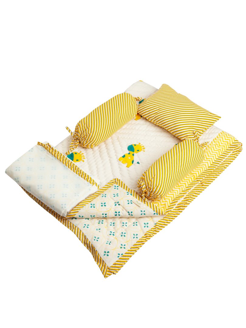 Soft and incredibly light, a dohar is perfect all year round as a covering. Three layers of fine muslin are stitched together in which the middle layer is hand block printed and edged with a striped flange.